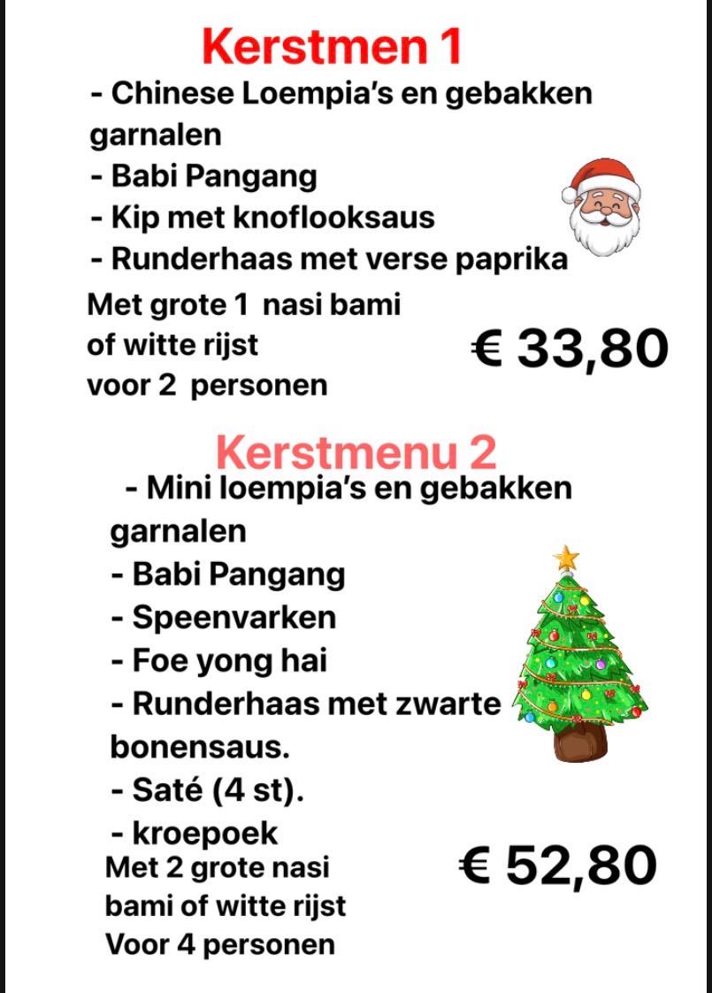 Met 2 grote GRATIS nasi, bami of witte rijst